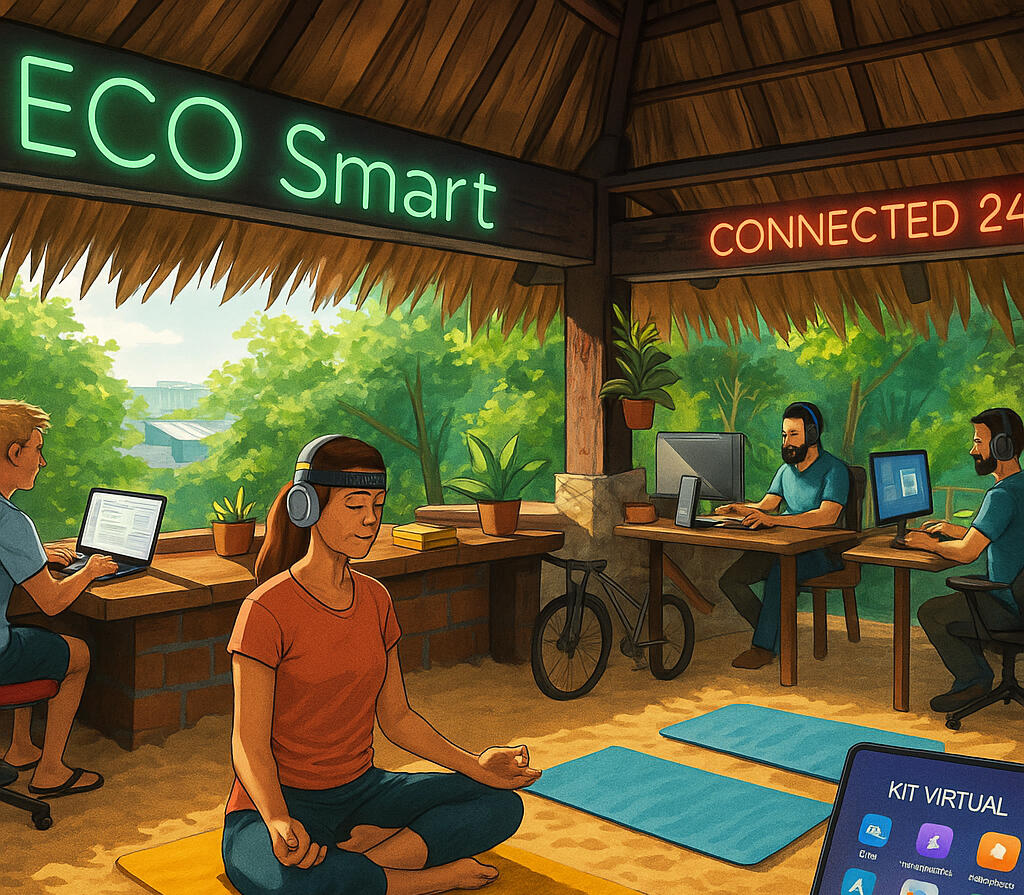 [EN] Productivity Guarantee: Includes the Eco Smart Office 24/7 and our Biocuantum Wellness Sensor. Our promise: 66% of our nomads achieve their best focus state here.🐆🐆ES] Vacaciones Productivas Incluidas: Cobertura total de tu workation con 3 Tours Regenerativos (incluyendo la experiencia Mar & Selva con WiFi en Playa Cristal). [EN] Productive Getaways Included: All-inclusive workation with 3 Regenerative Tours (including the Mar & Selva experience with Resilient WiFi at Playa Cristal).🌱🌱Reconnect Plan🌱 🌱: balance for families who want to reconnect without losing connectivity.🌳 Plan Raíz🌳: El Escape Familiar a la Tranquilidad. (Family Quiet Escape.)